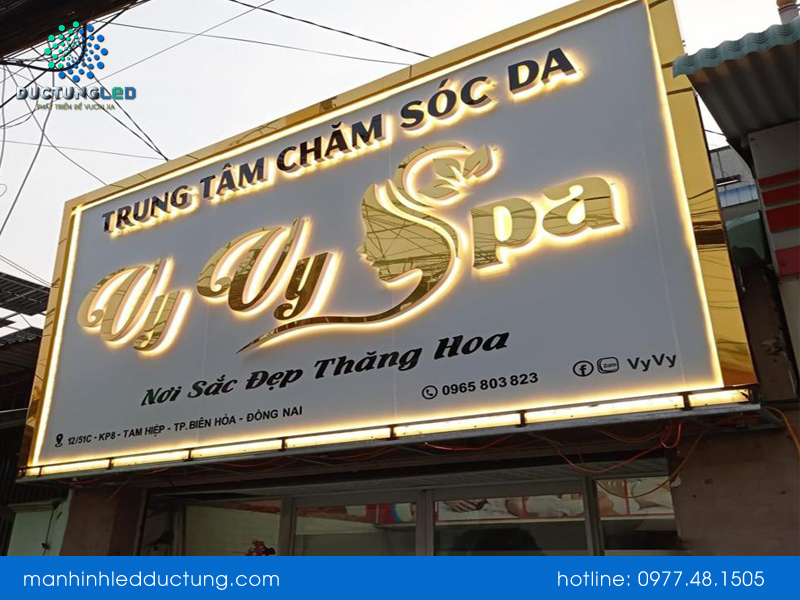 Thiết kế bảng hiệu spa khá đơn giản và tập trung vào các màu sắc là chính, chi phí làm bảng hiệu spa cũng khá cao và thường xuất hiện tại các đơn vị spa lớn.