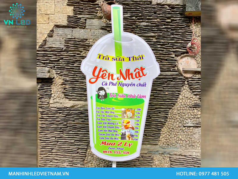 Đây là một lựa chọn thú vị và thu hút đối với các khách hàng trẻ tuổi. Bảng hiệu này cũng có thể tạo nên sự đặc biệt cho quán trà sữa của bạn và giúp khách hàng dễ dàng nhận ra quán của bạn trong đám đông.
