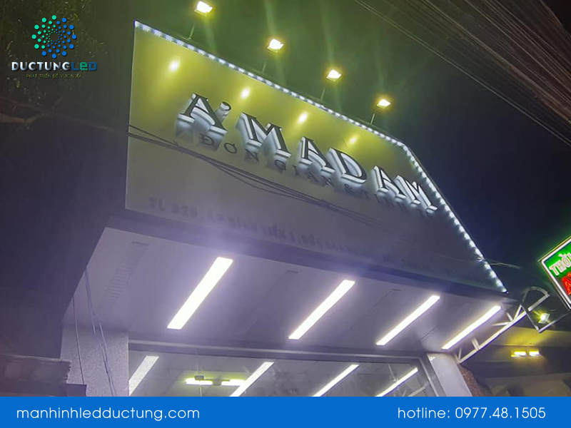 Sử dụng đèn pha sáng với mục đích hắt sáng, chiếu sáng bảng hiệu giúp làm nổi bật bảng hiệu quảng cáo vào ban đêm.