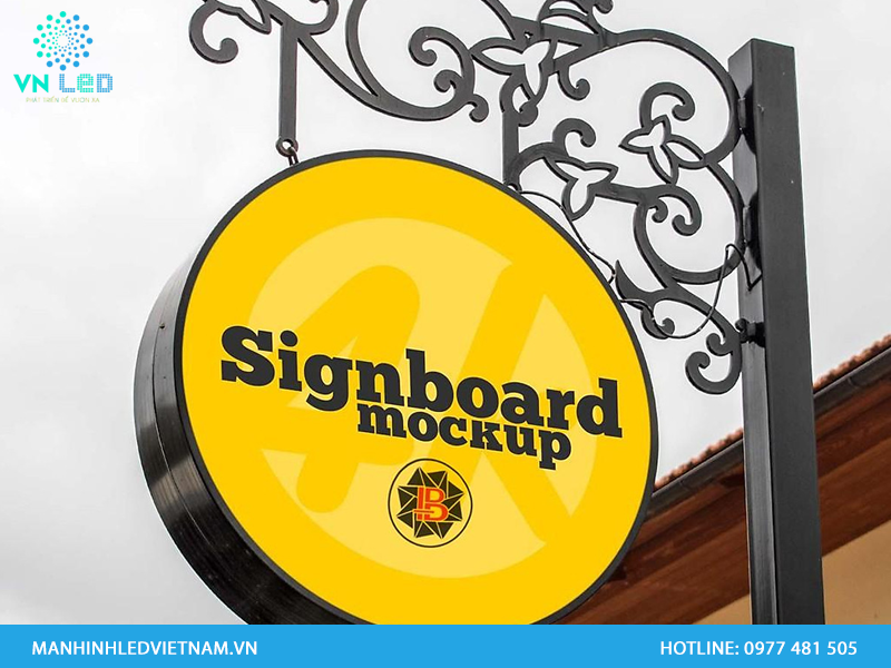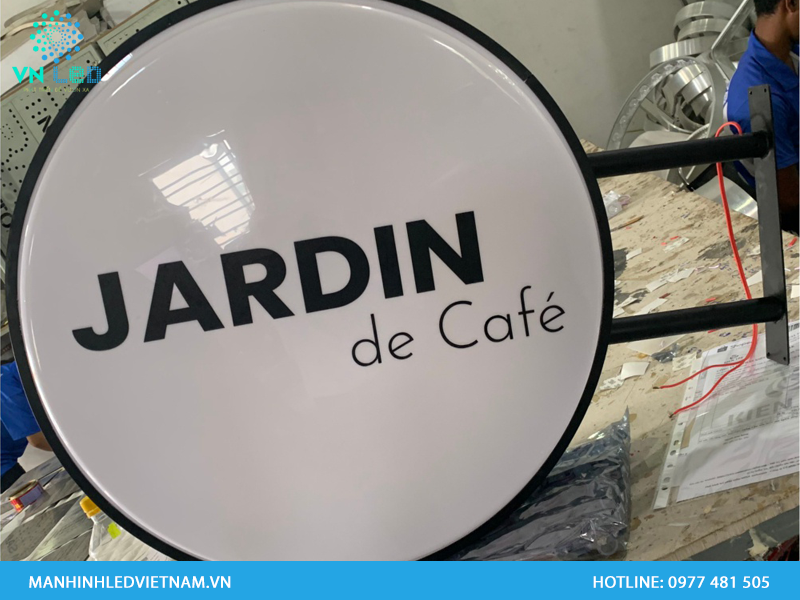 Bảng hiệu hộp đèn tròn thường được sử dụng để treo l trên tường, tạo nên một điểm nhấn đặc biệt cho không gian quảng cáo.