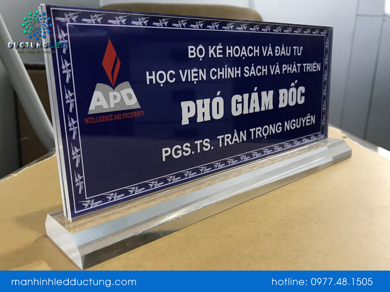 Các hình ảnh như logo, thông tin địa chỉ, số điện thoại, thương hiệu của công ty, doanh nghiệp sẽ được in trực tiếp lên bề mặt mica bằng các thiết bị in chuyên dụng. Nếu cần thiết, các lớp bảo vệ hoặc lớp chống tia UV có thể được thêm vào để bảo vệ in ấn khỏi bị phai màu hoặc bị tổn hại bởi ánh sáng mặt trời.